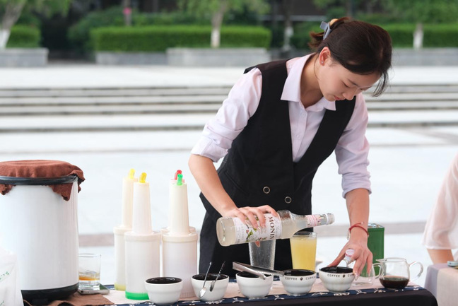 新式调饮则为活动增添了一抹时尚亮色。现场展示的茶咖、果茶等新式茶饮,香气四溢、口味独特、令人垂涎欲滴。大家在品味新式茶饮的过程中,真切感受到茶文化与现代元素的创新融合,开启了一场传统与现代的奇妙邂逅,展现了大学生们勇于尝试和挑战的创新意识。