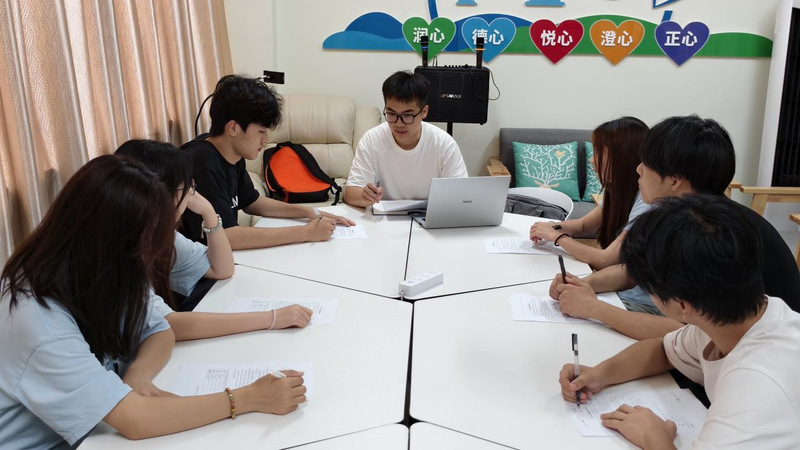 胡世彬的相机快门声盖过了蝉鸣,镜头里记录下向锐专注调色的剪影、刘思雨袖口沾染的青绿色颜料、刘瑞笔下翻涌的墨色笔迹。在他120GB的素材里,最常见的画面,是汗珠滴进队员眼窝的瞬间。