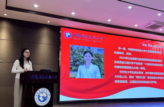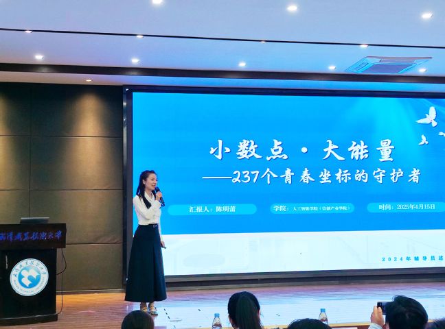 十三名辅导员怀揣赤诚初心依次登台,以丰富多样的形式展现其育人工作创新实践与突出成果。他们深耕一线,将琐碎日常化作育人诗篇,各展所长点亮学生成长之路。董炼秉持“五心”理念,以精细化服务呵护学生成长;陈明蕾甘做学生身后“小数点”,以红色实践筑牢信仰根基,用 “雁群效应”培育榜样团队;张旭日均步行 1.7 万步丈量学生社区安全底线,以社区为“战壕”、数据为“地图”、初心为“铠甲” 守护学生;魏子汉手握一站式社区、技能实践、朋辈力量“三把金钥匙”,打开育人新境界;李晨凭借“12345+N”密码解锁筑梦育人新篇章;陈衍俊将育人之路化作“星光礼、满仓礼、初心礼”,托举学生梦想;於凌翔以“五育法则”精准关爱毕业班级,助力成人成才;刘梦以“春种、夏耕、秋收、冬藏四季课程”编织学生成长轨迹,用2000封时光书信约定未来…… 他们用智慧破解育人难题,以热爱守护青春梦想,让点滴关怀汇聚成学生成长路上的温暖星光。