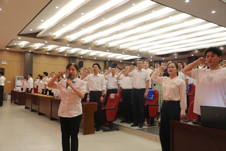 随后,与会人员同上一堂特殊党课。党龄38年的教师党员刘昌喜与党龄仅3天的学生党员杨至烨开展跨越代际的对话,围绕“初心与使命”主题进行深入且真挚的交流。全体党员在刘昌喜领誓下庄严地重温入党誓词。