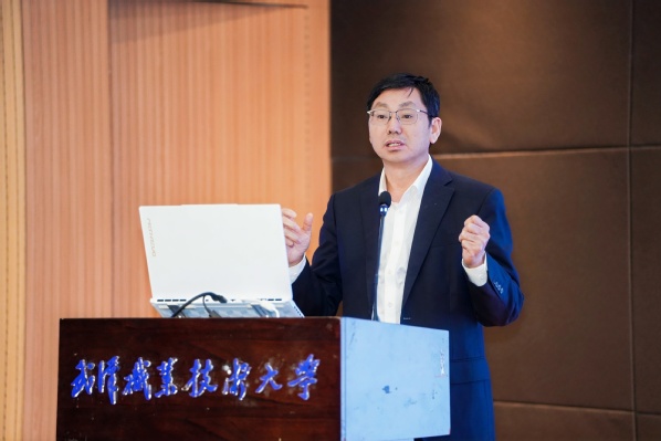 广东科学技术职业学院机器人学院院长余正泓带来“AI赋能・智造未来”的实践探索主题分享,介绍该校“机器人+人工智能”在教学资源开发、科研项目孵化、技能人才输送中的“三维融合”经验。