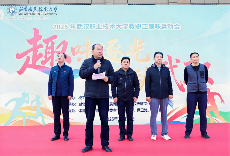 新闻网讯(通讯员孙天斌)冬日暖阳聚活力,趣味竞技展风采。12月25日,武汉职业技术大学光谷校区体育场,彩旗迎风招展,欢声笑语漫过田径场,以“趣味逐光・燃动武职”为主题的2025年教职工趣味运动会在此热闹启幕。全校14个分工会千余名教职工暂时放下教案与工作台账,化身活力满满的运动员,在赛场上释放激情,在协作中凝聚温情。校领导胡象斌、刁元斌、徐坤、李仁平、杨旭东等出席开幕式,与教职工们一同见证这场充满欢乐与力量的盛会。